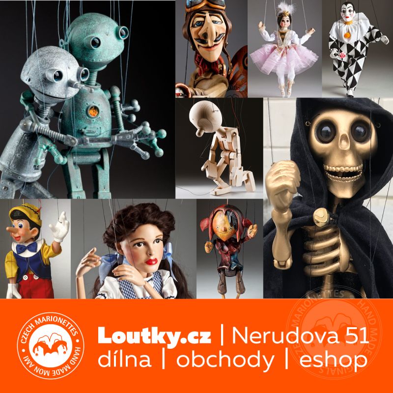 V našem obchodě i e-shopu najdete obrovský výběr loutek, ať už z naší dílny v Nerudovce i od dalších českých loutkářů.