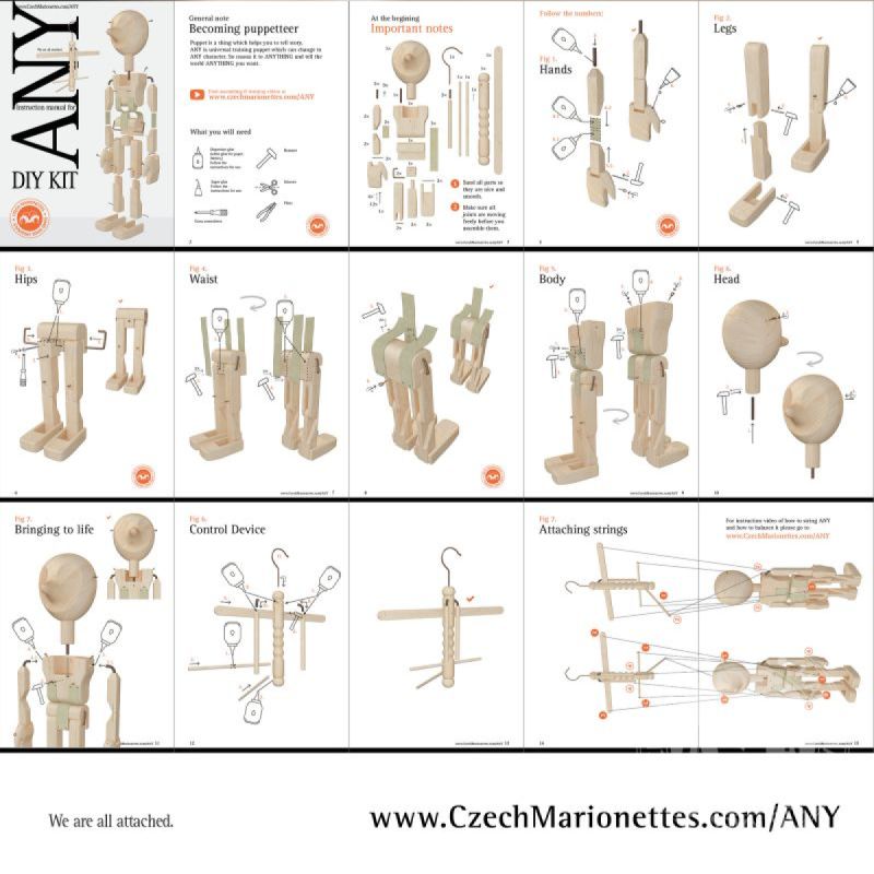 Také vyrábíme několik typů tzv. DIY kitů, což jsou sety s jednotlivými částmi loutek, ze kterých si můžete loutku vyrobit sami.