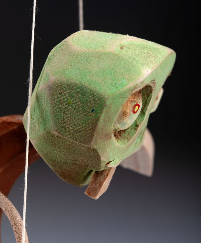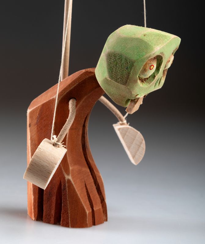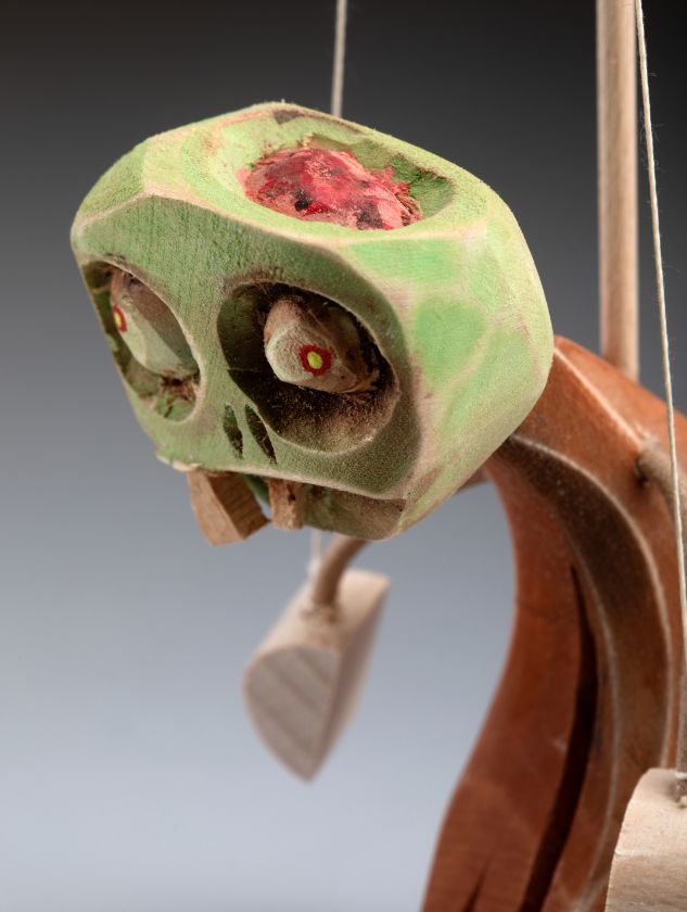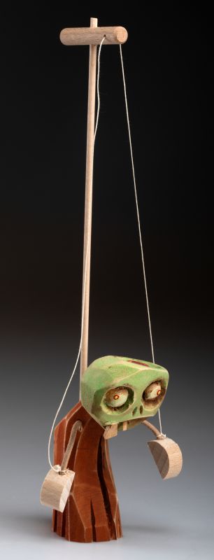 Tato tyčová loutka je ručně vyřezaná z lipového dřeva a následně malována. Zombiek je parádní loutkou pro naprosto každého. Je to malý umělecký kousek, vhodmý jako sběratelský předmět, dárek či dekorace.