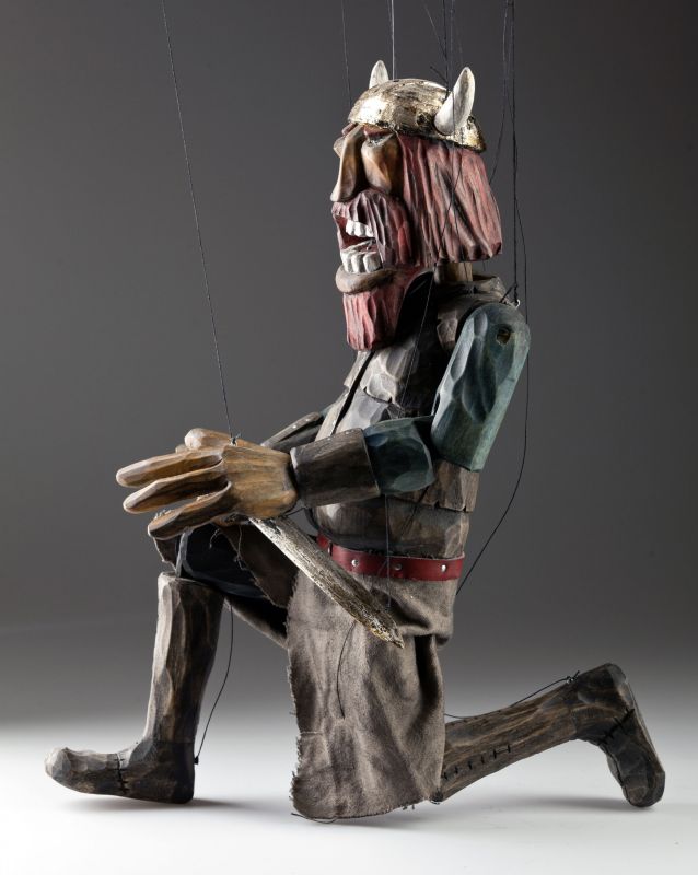 Když se podíváte poprvé na tuto postavu, máte hned trochu strach. Ale nemějte, je to krásný, ruční výtvor a za jeho válečným výrazem je muž bojující o přežití. Na sobě má severskou helmu a kožené oblečení, které jsou perfektně ručně malované. Jeho červené vlasy a vousy mu přidávají na agresivním zevnějšku, když jde do boje. Jeho meč je připravený zaútočit. Všimněte si pozornosti věnované detailům, cvoček a kožešiny, které přidávají této loutce z kolekce "Právem silnějšího" na její autenticitě. Má střední pohyblivost, takže je skvělý na hraní i jako děsivá vychytávka do Vaší domácnosti.