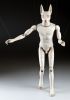 Dieses atemberaubende Kunstwerk sticht unter vielen hervor. Anubis Marionette ist präzise handgeschnitzt, stark lackiert und der ganze Körper ist anatomisch perfekt. Die für diese Marionette verwendete Schnitztechnik entspricht der des Barock. Sehr feines und zartes Aussehen.