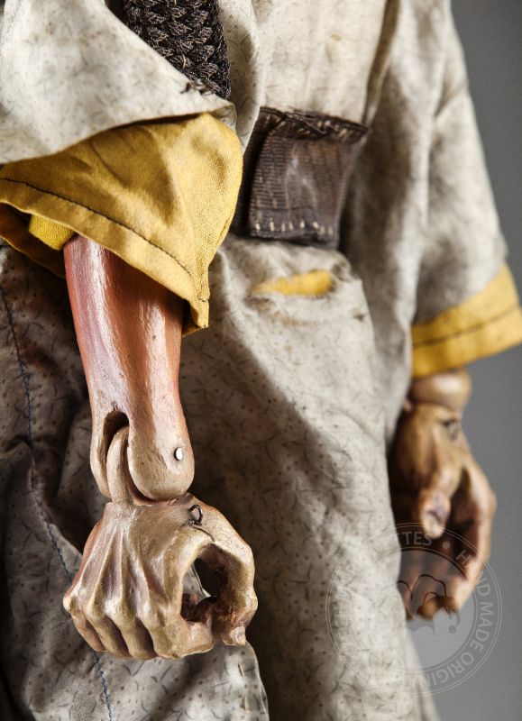 Mit ihrem dicken Bart, den Stoffschuhen und dem Lederband hat diese Hercules-Marionette einen wirklich einzigartigen, rohen Look. Seine dunklen Augen strahlen Güte aus und sein Blick wird dein Herz gewinnen. Alle Materialien, aus denen diese Marionette hergestellt wurde, sind original und von sehr hoher Qualität.