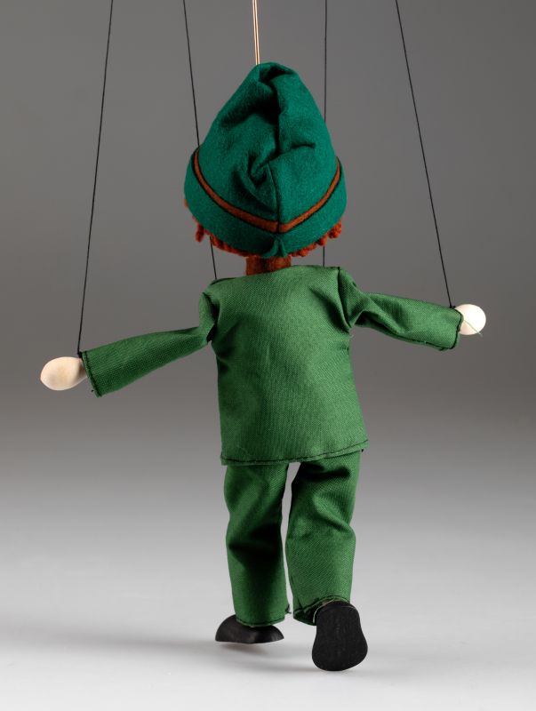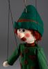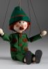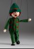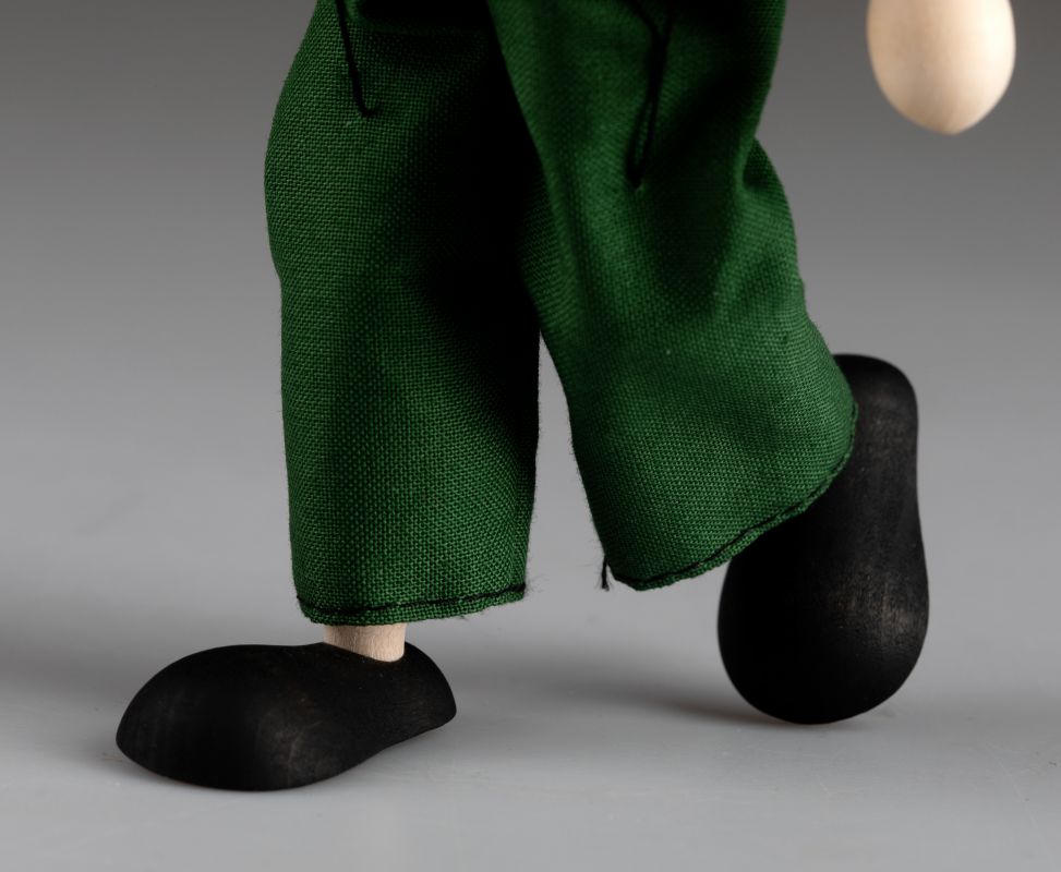 Diese Holzmarionette ist in ein niedliches grünes Outfit gekleidet und kann Bewegungen wie Gehen, Sitzen oder das Bewegen der Arme ausführen. Es ist eine einfache, robuste Schnurmarionette, ideal für Sammleranfänger oder Kinder, die die fantastische Welt der Marionettenpuppen erkunden möchten.