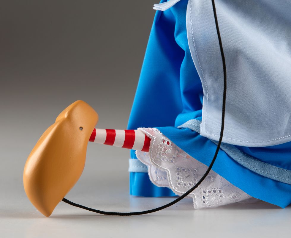 Mit einer Höhe von 40 cm wird diese Marionette sorgfältig aus hochwertigen Materialien gefertigt und detailliert ausgearbeitet. Vom fein bemalten Gesicht und den ausdrucksstarken Augen bis hin zum maßgeschneiderten Kostüm ist jedes Detail darauf ausgelegt, den nostalgischen Geist klassischer Zeichentrickpuppen widerzuspiegeln.