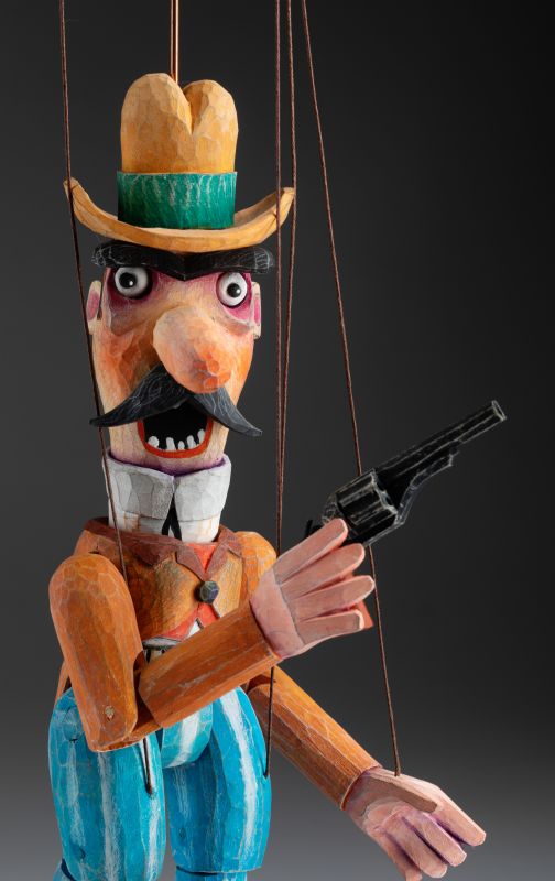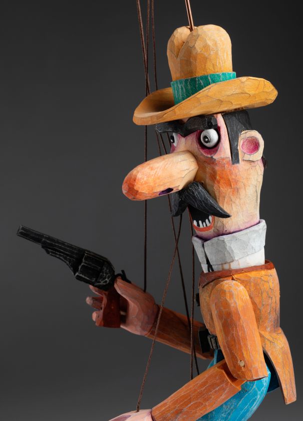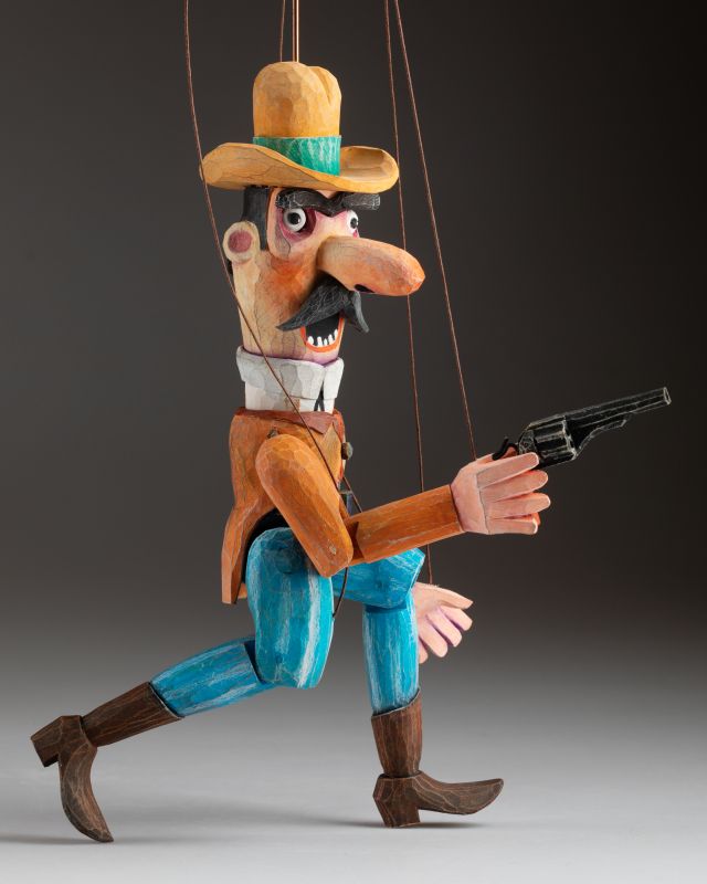Diese Cowboy-Marionette ist das einzige Original von Jan Suša. Er wird sich nie wiederholen, sodass Sie sich ein einzigartiges Kunstwerk sichern können.