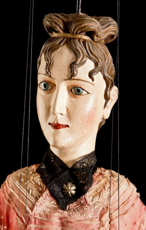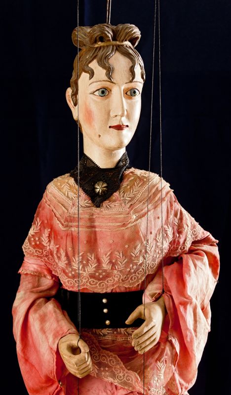 Die Marionette der Adligen wurde in den Jahren 1870-1880 vom Puppenspieler Josef Allesa geschaffen. Bei der Herstellung der Marionette wurden hochwertige Materialien aus dieser Zeit verwendet.