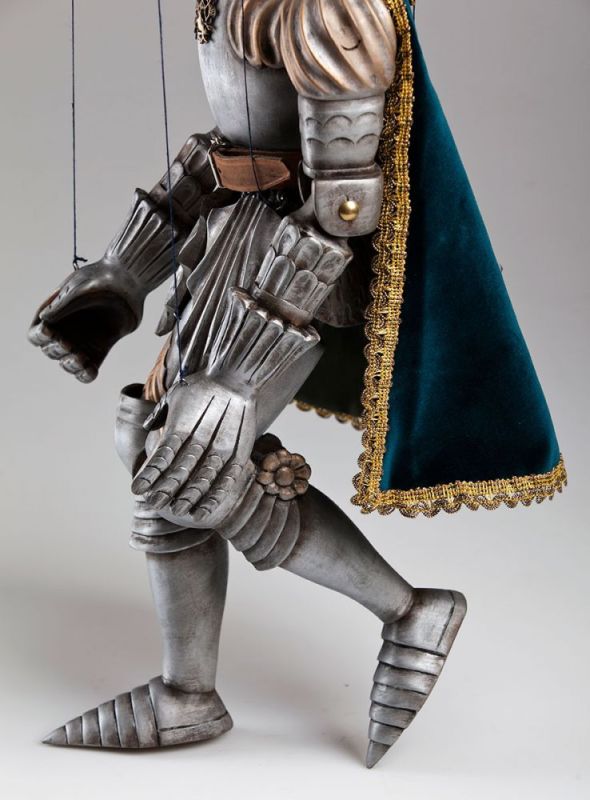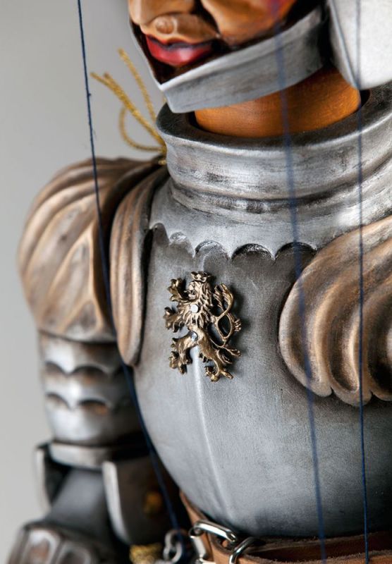 Unter tschechischen Marionetten ist er wirklich einzigartig. Auf seiner silbernen (nicht toxische Farbe) Rüstung können Sie viele fabelhafte Details beobachten. Er ist ganz und voll aus Holz geschnitzt. Er ist vor allem als Dekoration geeignet und passt sehr gut in jede gute Marionettensammlung.