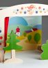 The four backgrounds will take you to a forest, a field by the village, a cottage room and a castle. You will certainly appreciate accessories as a tree, bush or chairs. The curtain is included. This theatre is available without the puppets. You can find the best suitable marionettes here.