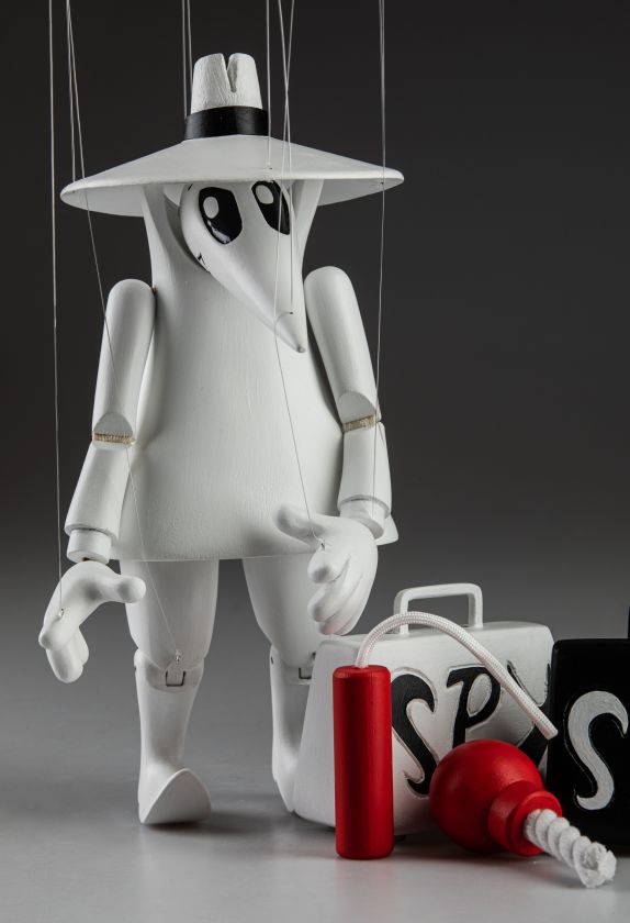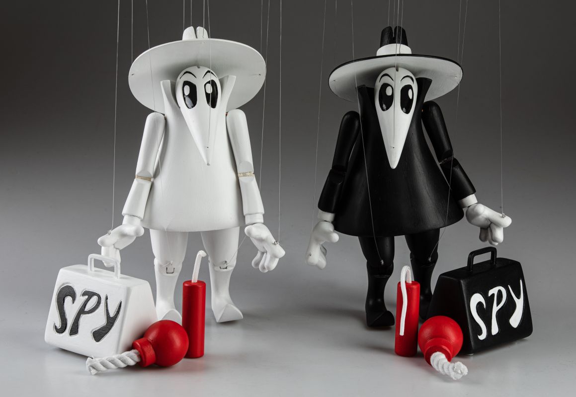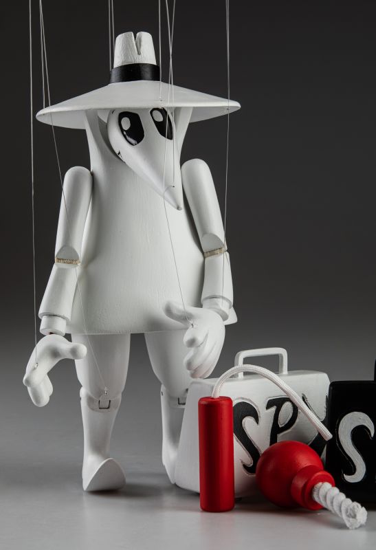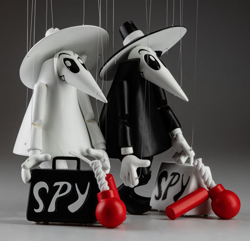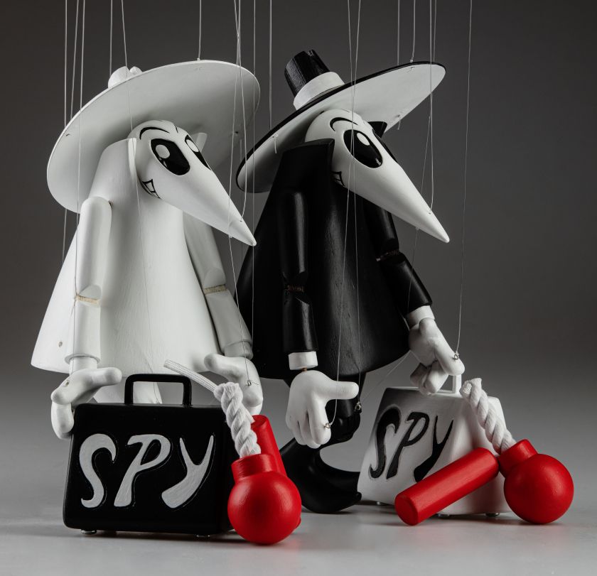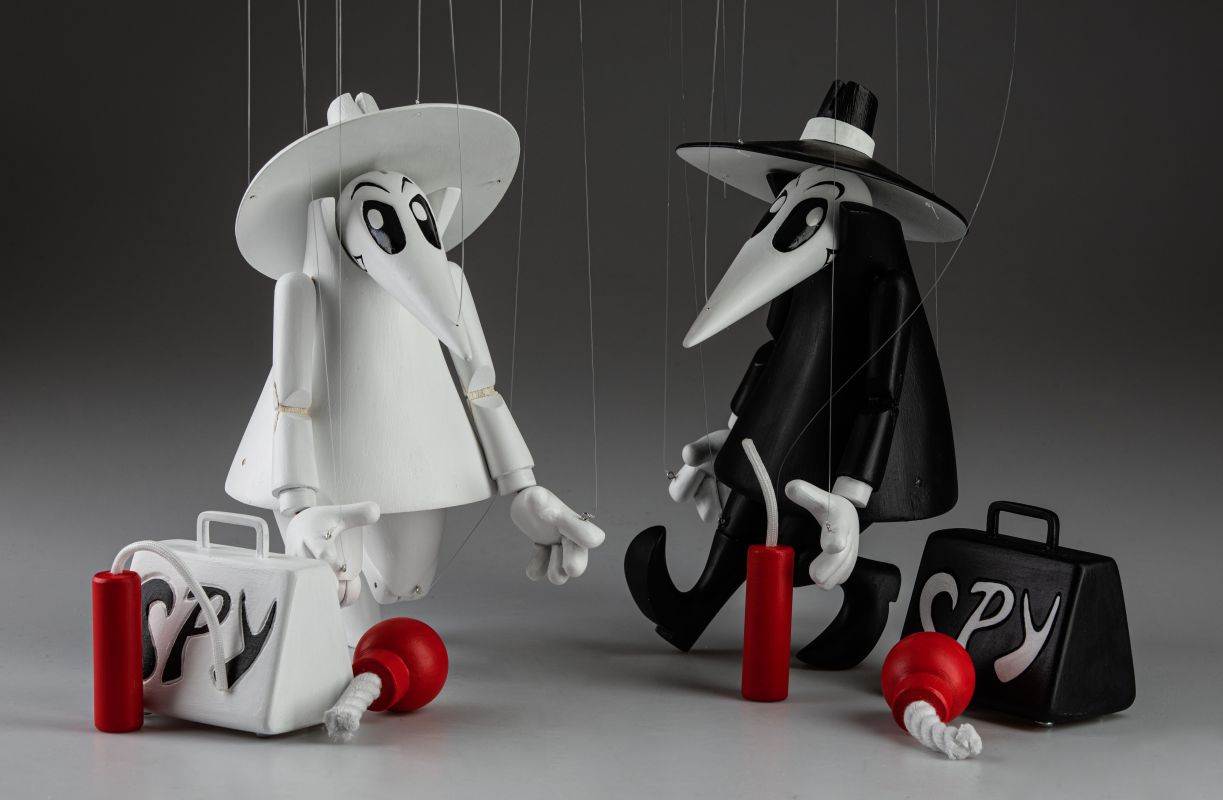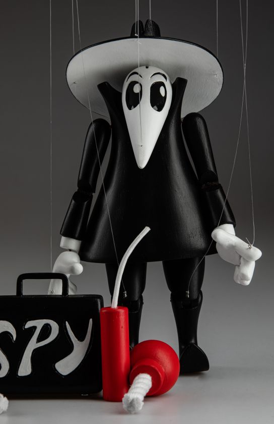 These Spy guys are based on the original character from comics published in Mad magazine in the 60s. Absolutely stunning hand-carved puppets that represent the art of marionette making.