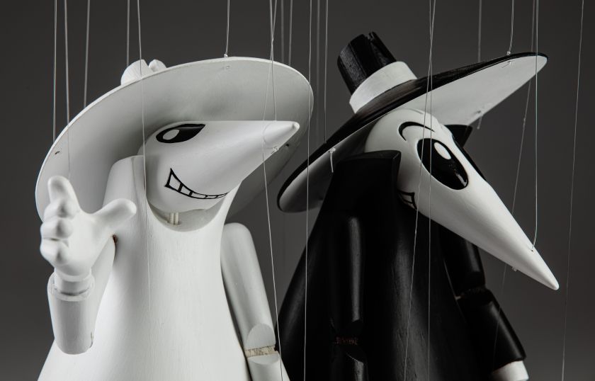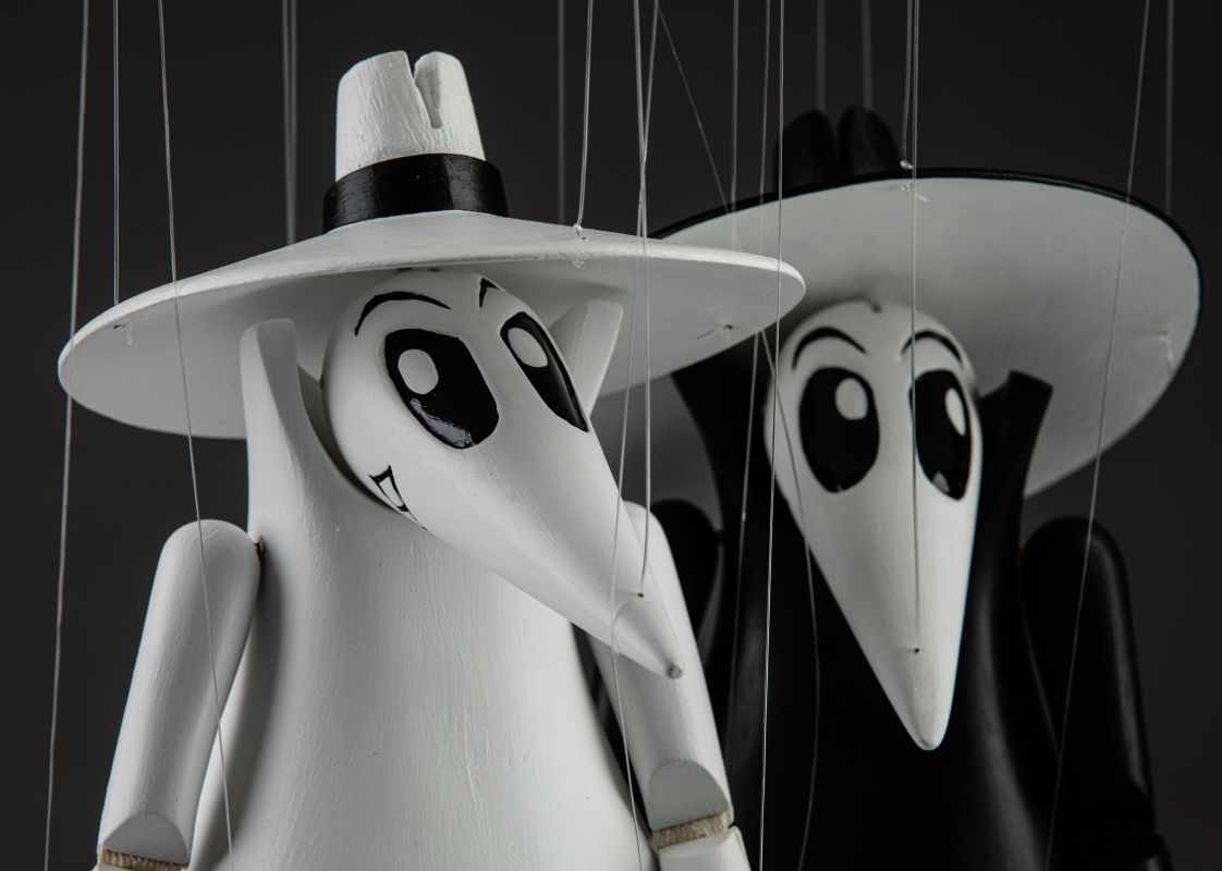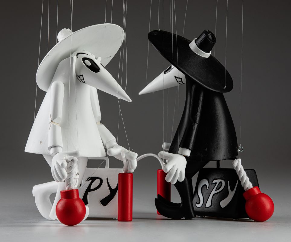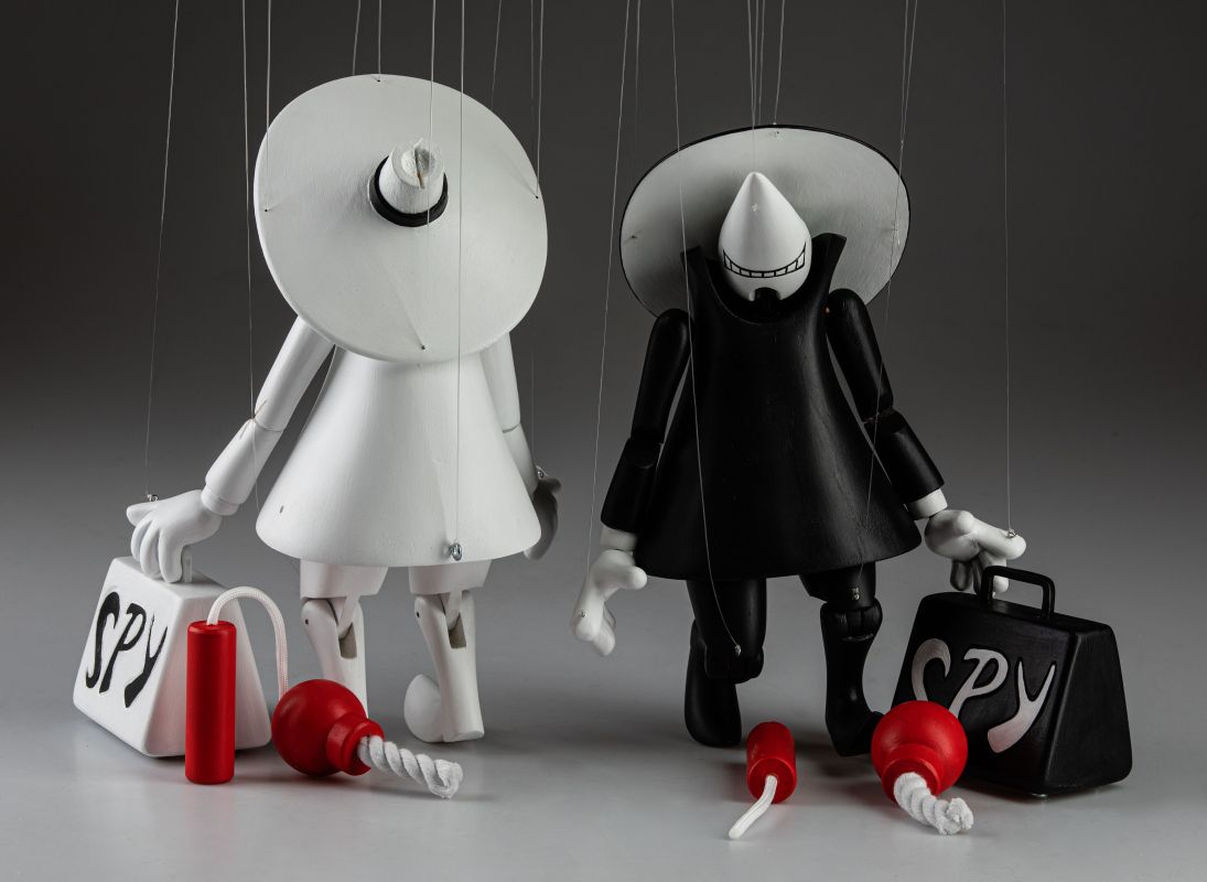 Spy vs Spy - Stunning wooden marionettes - hand-carved