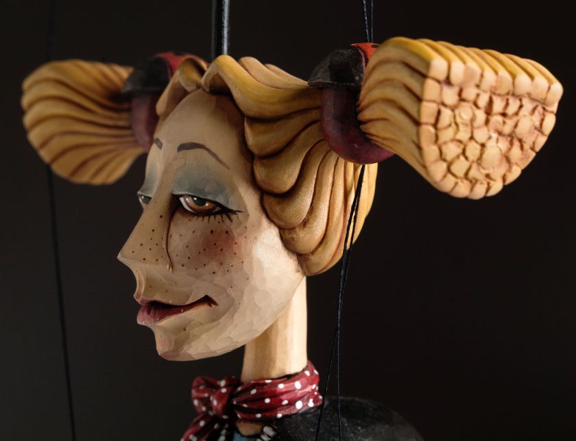 Gorgeous feminine wooden marionette carefully hand-carved from linden wood by puppeteer Jakub Fiala.