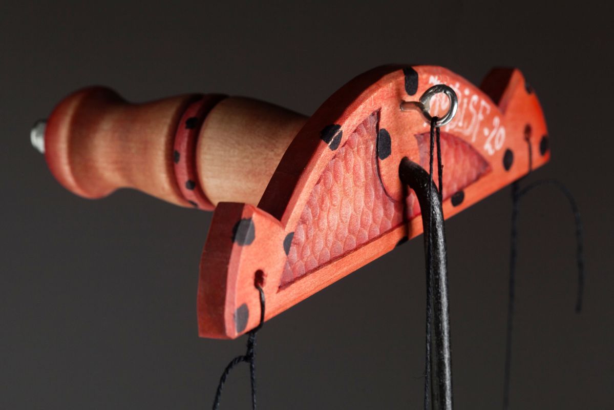 Ladybug string puppet can be very nicely controlled using a classic controller, which is connected to a solid metal wire and threads attached to the arms and legs. In terms of moveability, she has great possibilities - the level of movement is semi-professional - he doesn't have articulating arms (does not bend at the elbow) but she walks really well. This marionette was carved as a collector's piece for lovers of original art. But it will adorn any puppet theater.