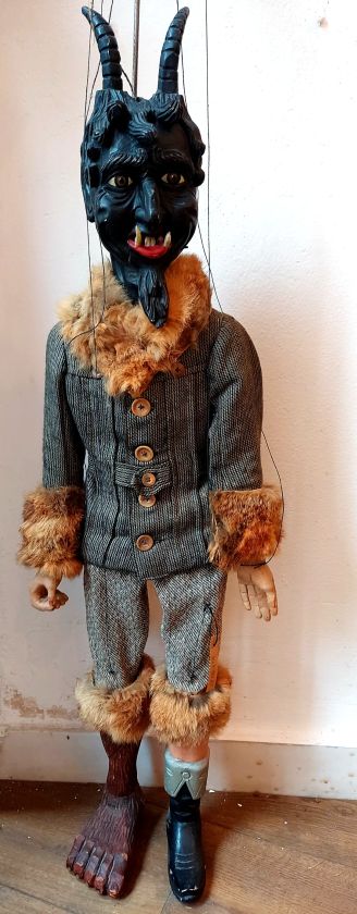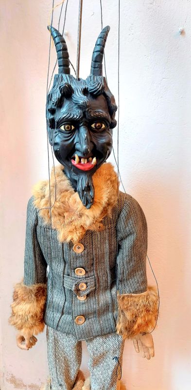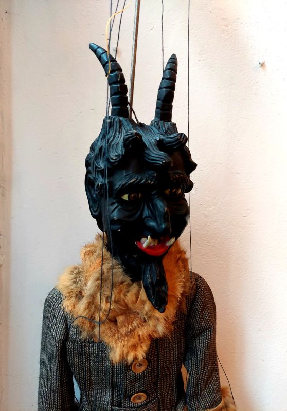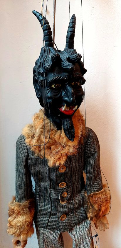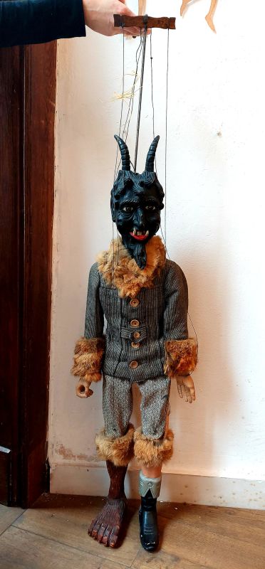 The devil marionette was made around 1920 by the Czech puppeteer and woodcarver František Šimek.