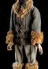 This marionette was made out of historical materials of high quality. Her whole body is carved from wood, but she is different from other marionettes - she has hair made of wood and at the same time she has artificial hair added to it. Note also the eyes in which the beads were inserted, which is also unique. Another peculiarity of this marionette is the humorously "torn" shoes. In short, an original piece of history.