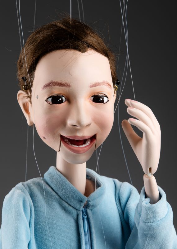 La marioneta se diseña e imprime utilizando tecnología 3D. Luego, afinamos y moldeamos cuidadosamente cada centímetro del cuerpo, cosemos la ropa, creamos el cabello, pintamos la cara y atamos los hilos a un controlador de madera.
