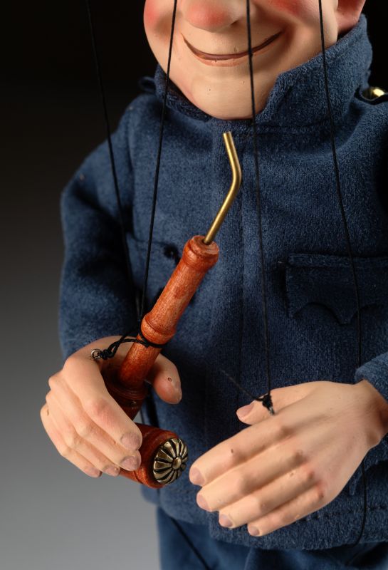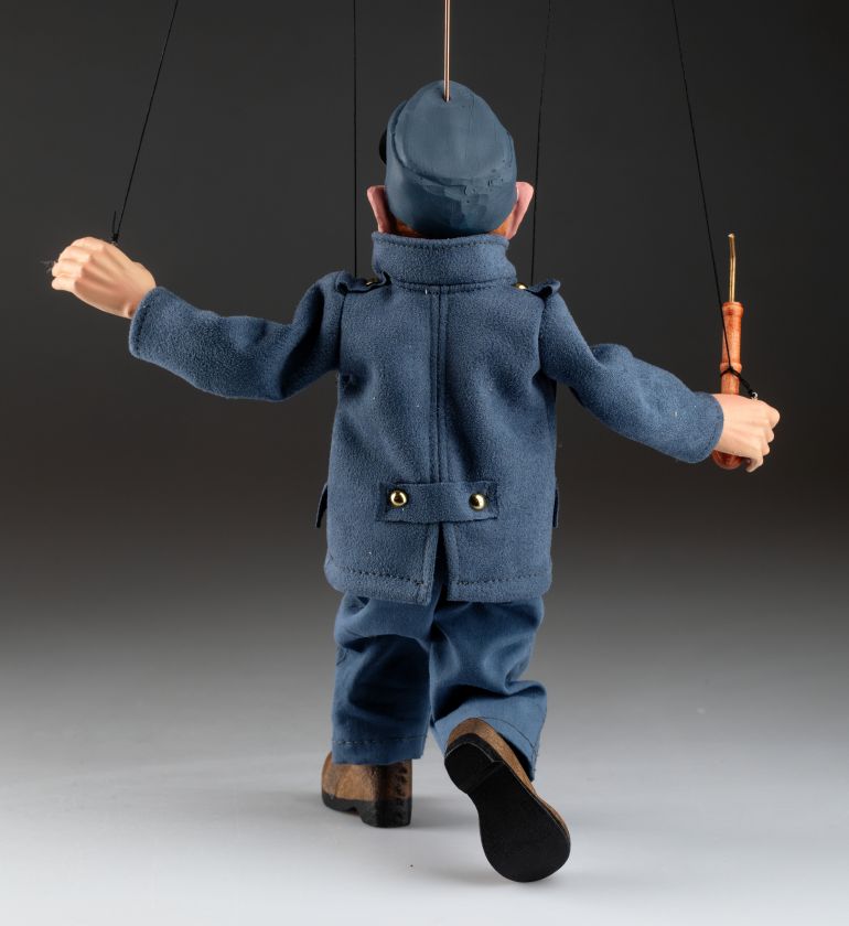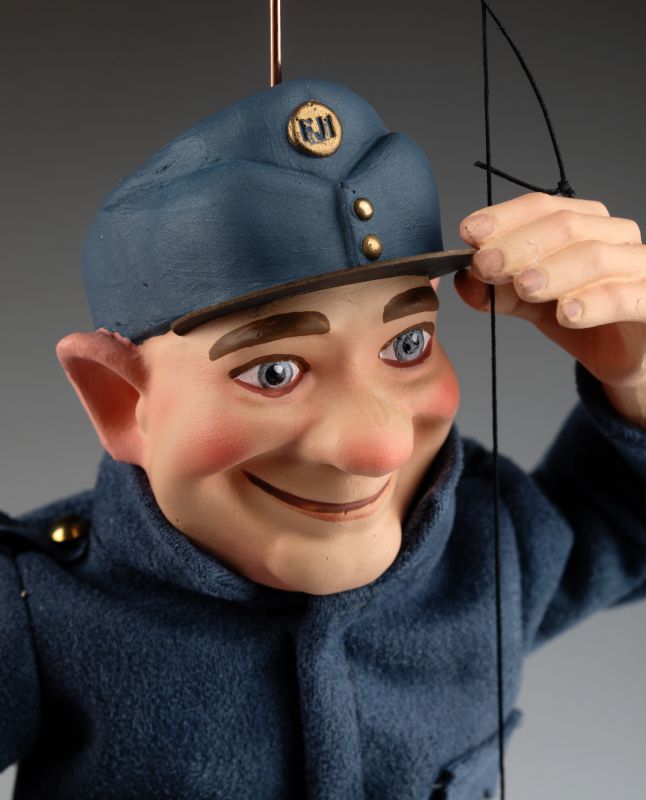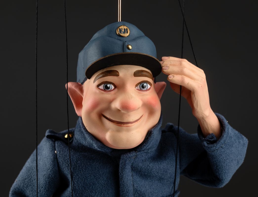 La marioneta de Švejk está inspirada en un famoso personaje checo del libro "Las aventuras del buen soldado Švejk" del célebre escritor checo Jaroslav Hašek. El soldado Švejk es conocido por su gran sentido del humor y su enfoque intrépido hacia las autoridades. Nuestra marioneta representa a la perfección su carácter.