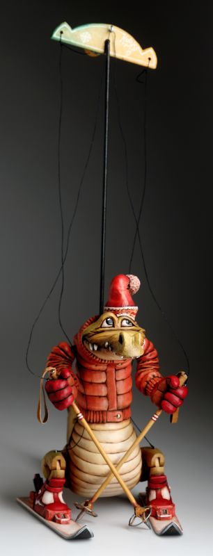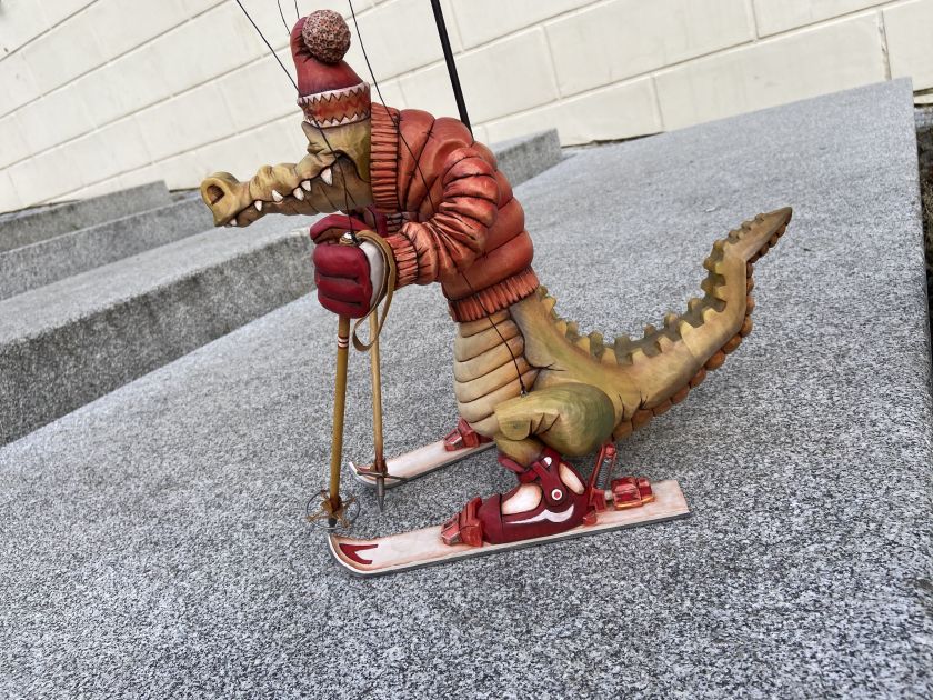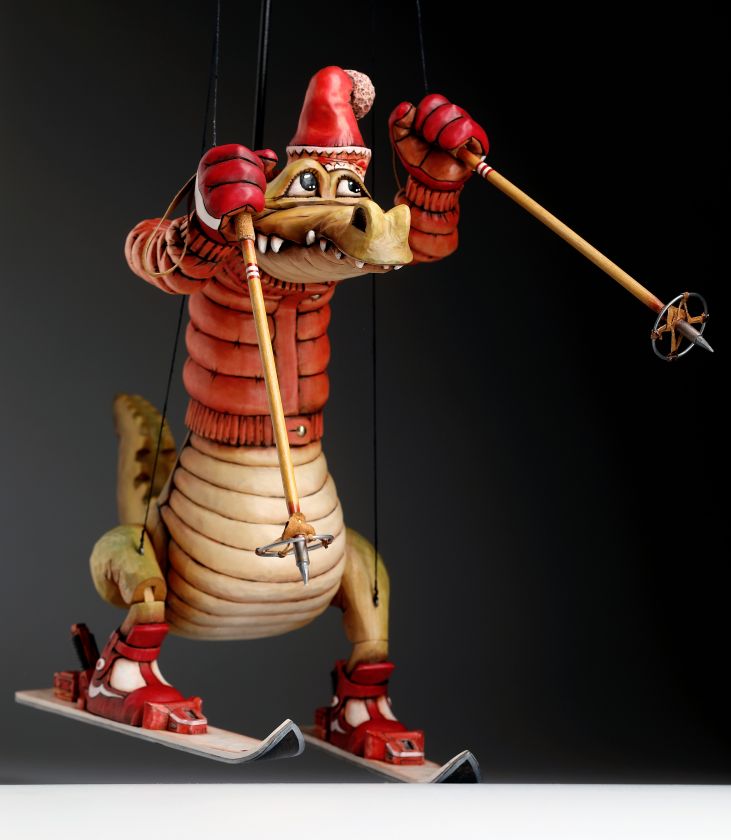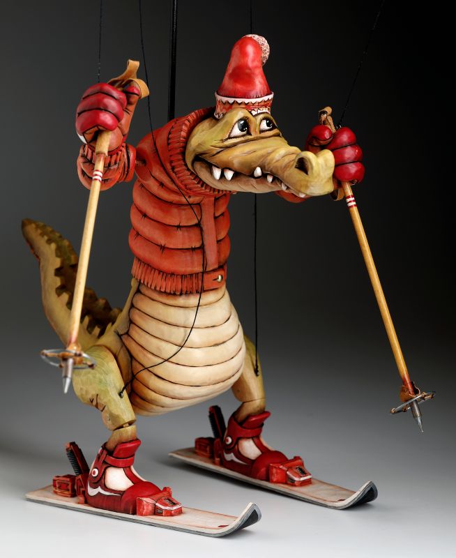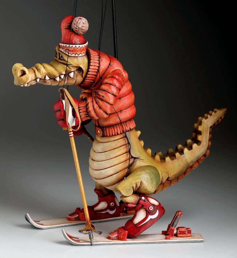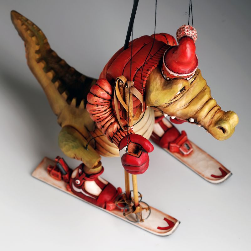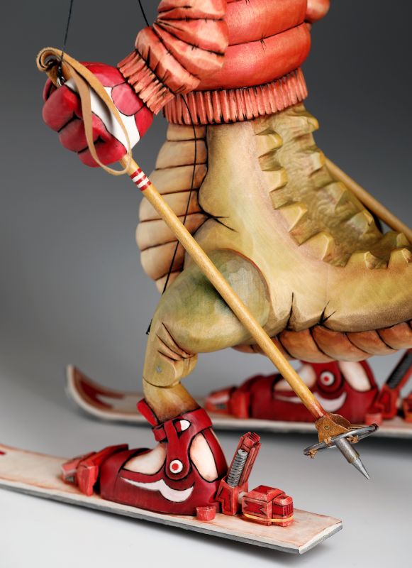 La créativité artisanale des marionnettes marionnettes de la collection Zoo Sapiens n'a pas de frontières. Admirez avec nous la première photo d'un crocodile juste sculpté sur des skis