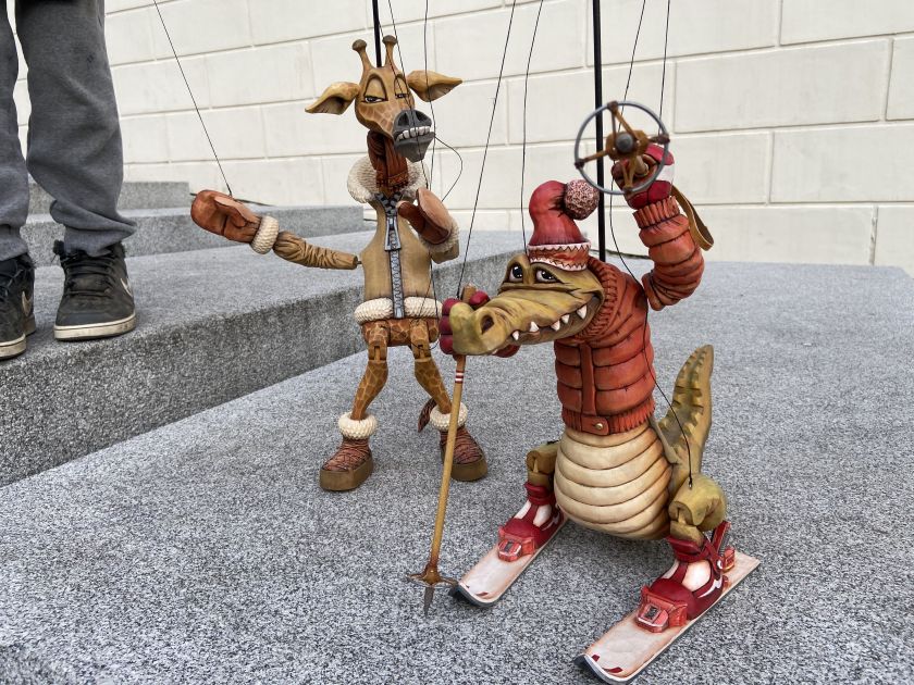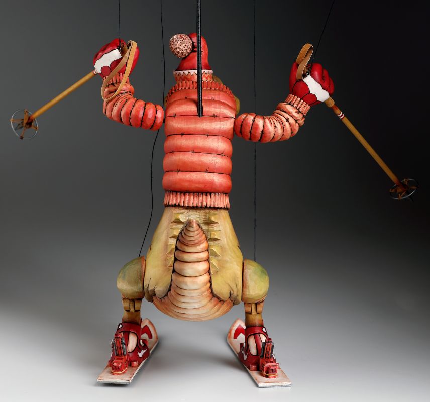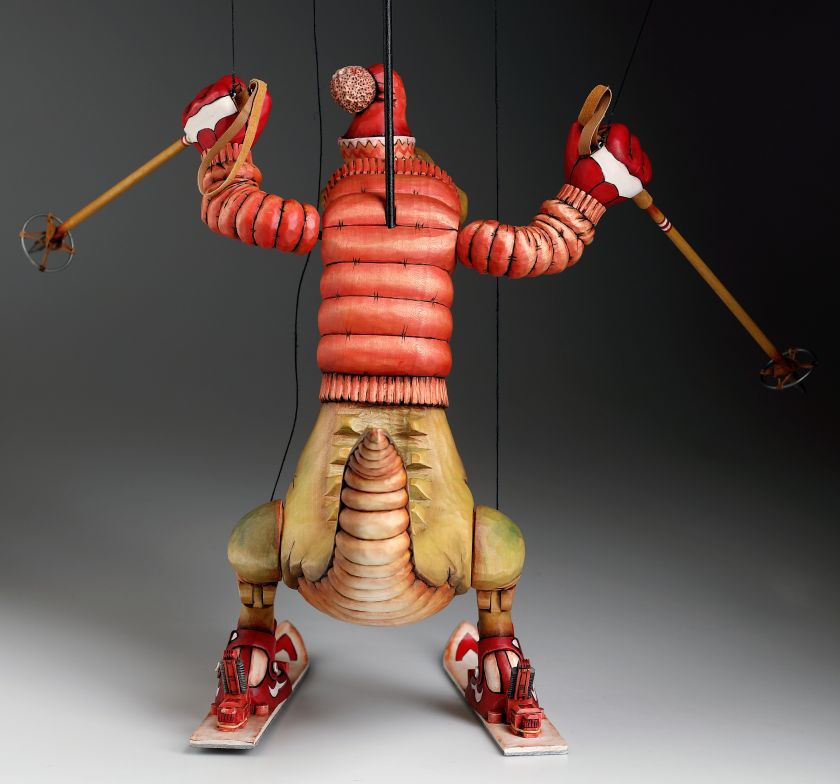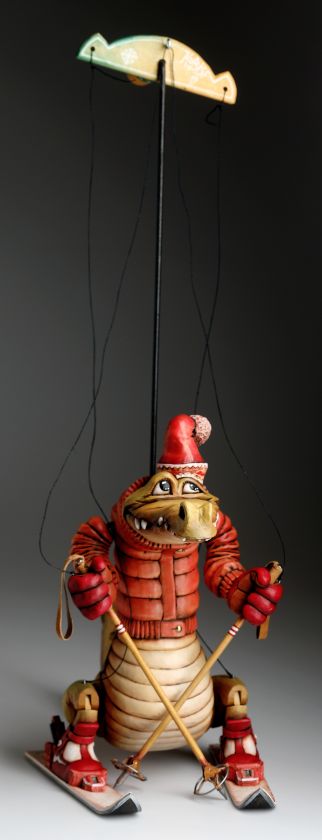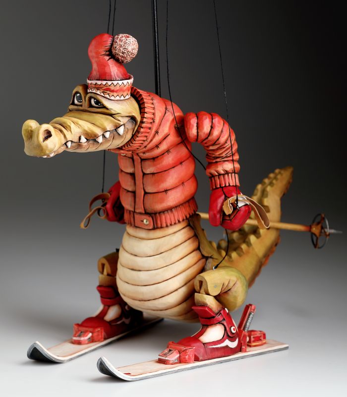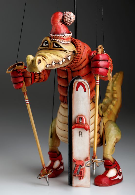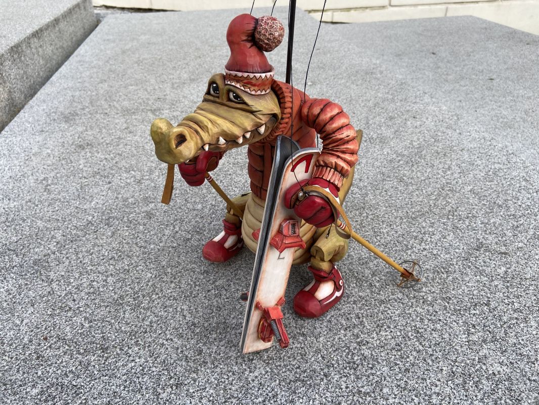 La créativité artisanale des marionnettes marionnettes de la collection Zoo Sapiens n'a pas de frontières. Admirez avec nous la première photo d'un crocodile juste sculpté sur des skis