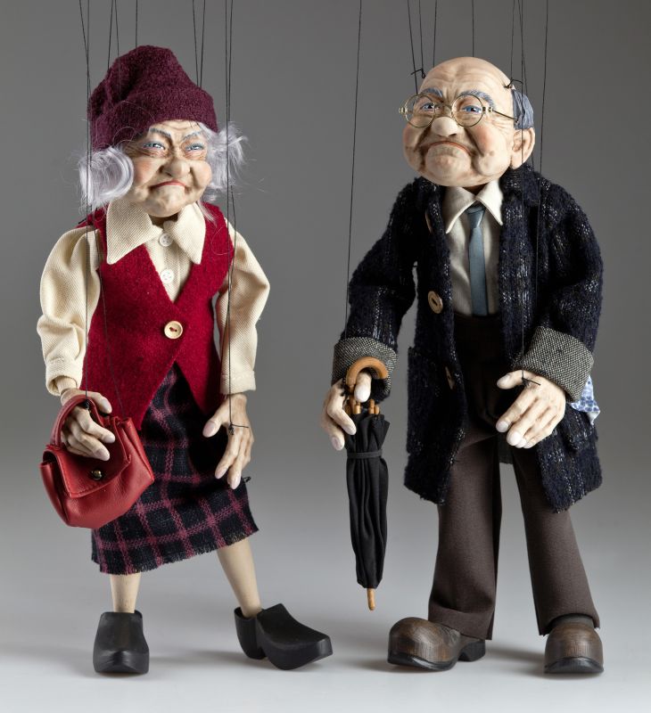 Envie de notre vieux couple ? Il suffit de les commander, et ils vous rendront heureux en quelques jours :)) Explorez également Marionettes.cz pour découvrir d'autres marionnettes de dessins animés. Regardez l'incroyable marionnette du cuisinier, du docteur, de Michael Jackson, Jack Sparrow, Pinocchio, etc... Le choix est vraiment vaste ;)