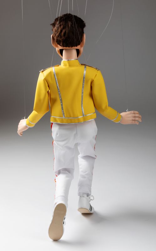 Quand on dit rock, presque tout le monde pense à ce célèbre nom de l'industrie de la musique - Freddie Mercury et son groupe Queen. Son apparence et sa personnalité sont vraiment uniques, tout comme cette marionnette. Conçu dans un programme graphique 3D, fabriqué et peint à la main. Sa tenue emblématique se compose d'une veste en cuir jaune, d'un pantalon blanc, d'un débardeur et de baskets Adidas. Comme vous pouvez le voir, il a également des accessoires sympas comme des lunettes de soleil et un microphone. Sa coiffure est faite à la manière donc il a l'air très réaliste.