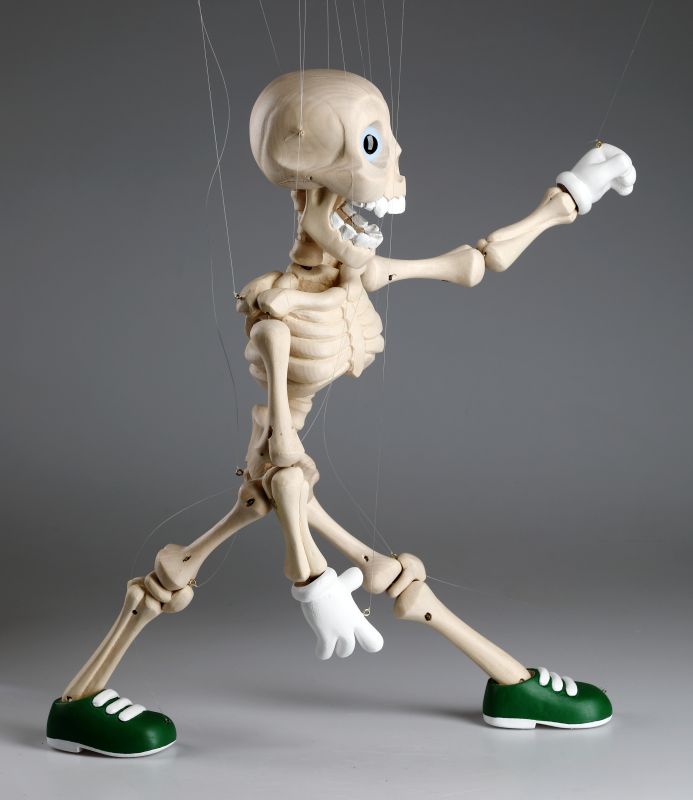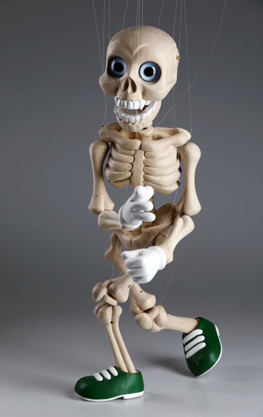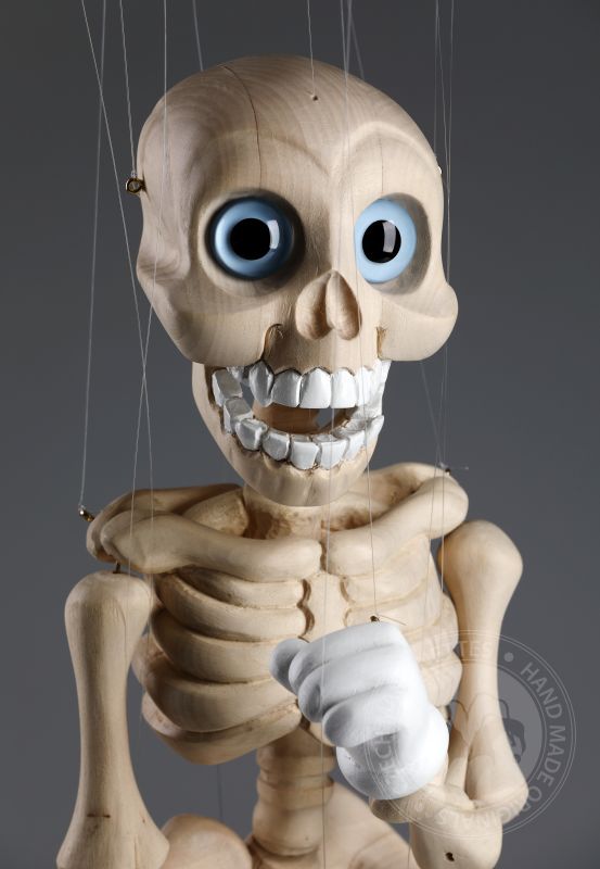 Cette version en bois de notre célèbre personnage squelette est tout simplement exceptionnelle. Notre talentueux marionnettiste Adam a mis beaucoup d'efforts dans ce projet et il s'est avéré incroyable. Chaque pouce est soigneusement sculpté à la main dans du bois de tilleul, les chaussures, les gants et les dents sont peints à la main. Ses yeux brillent d'une couleur bleu clair que vous pouvez personnaliser si vous le souhaitez. La mobilité de Bonnie est à un niveau professionnel et vous jouez avec lui pour tout type de performance.