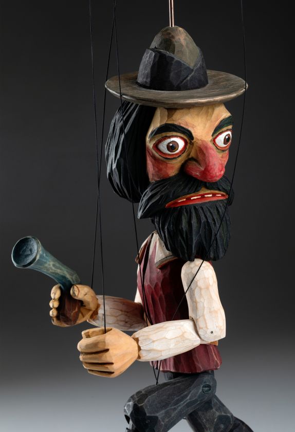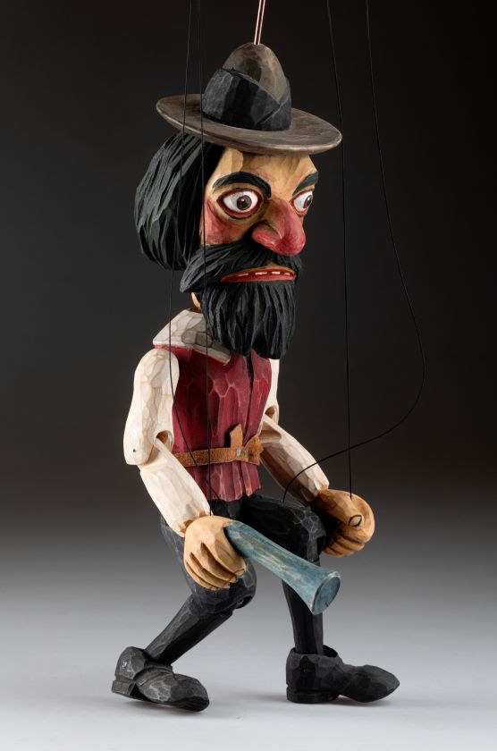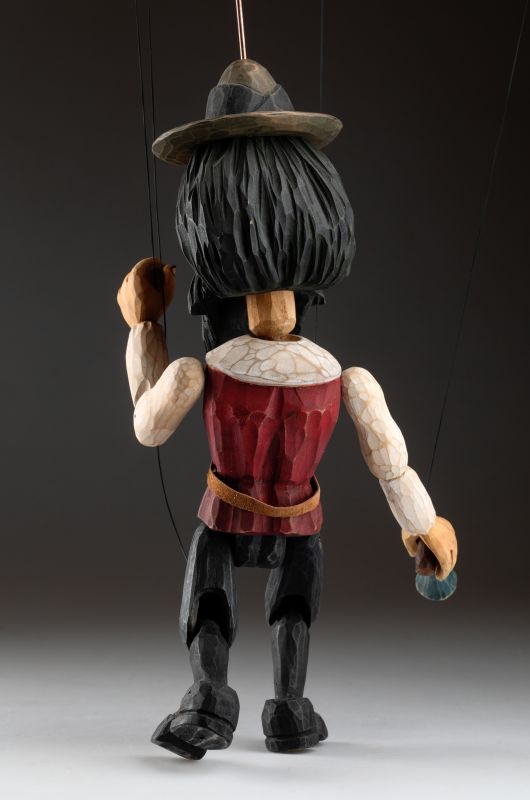 La texture du bois et les couleurs peintes à la main ajoutent une patine unique et un charme particulier à la marionnette. Cette marionnette de bandit n'est pas seulement un jouet ordinaire – c'est une pièce de collection et un élément de décoration stylé qui apporte la magie des contes populaires tchèques et la maîtrise de l'artisanat traditionnel dans tout intérieur.