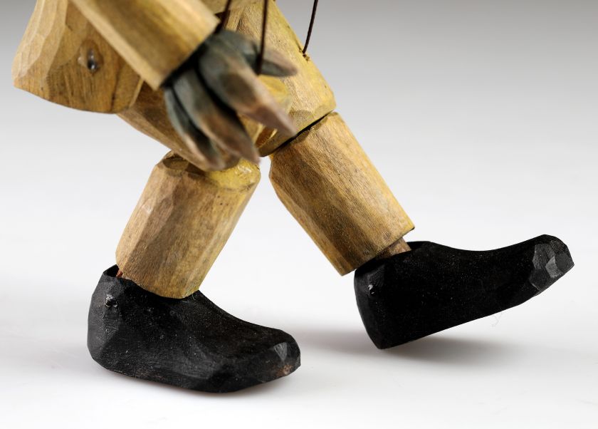 La marionnette sculptée de façon traditionnelle est dotée d'une capacité de mouvement traditionnelle ainsi que d'un contrôleur de base en bois (dispositif de commande de marionnettes) et d'une longe. La tête est reliée au contrôleur par un fil épais, les membres sont classiquement attachés avec des fils. La marionnette est ainsi facile à manipuler, même si elle n'est capable que de mouvements de base.