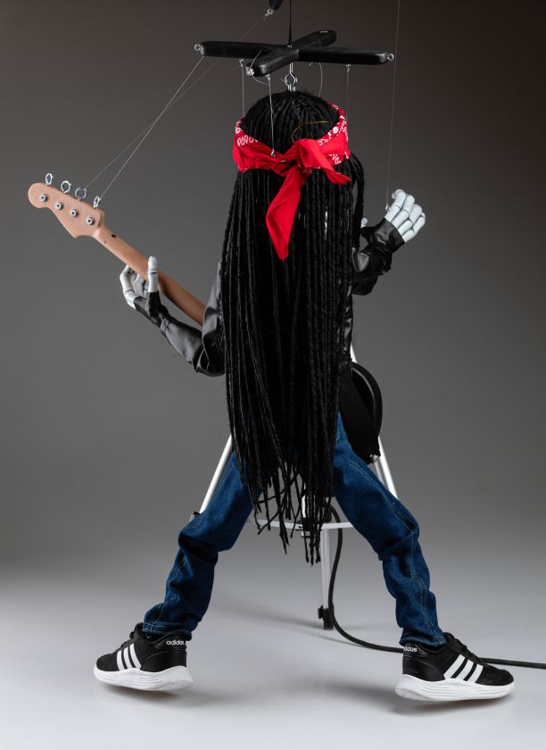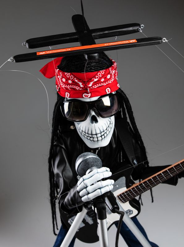 Cette marionnette a été créée dans notre atelier sur commande pour l'un de nos chers clients. L'idée était de construire une marionnette qui ressemblerait à une rockstar célèbre, peut-être Axl Rose, peut-être Steven Tyler. Nous vous laisserons cela.