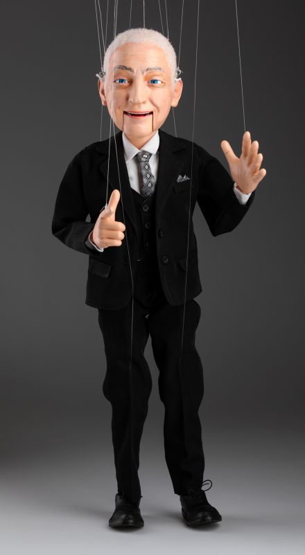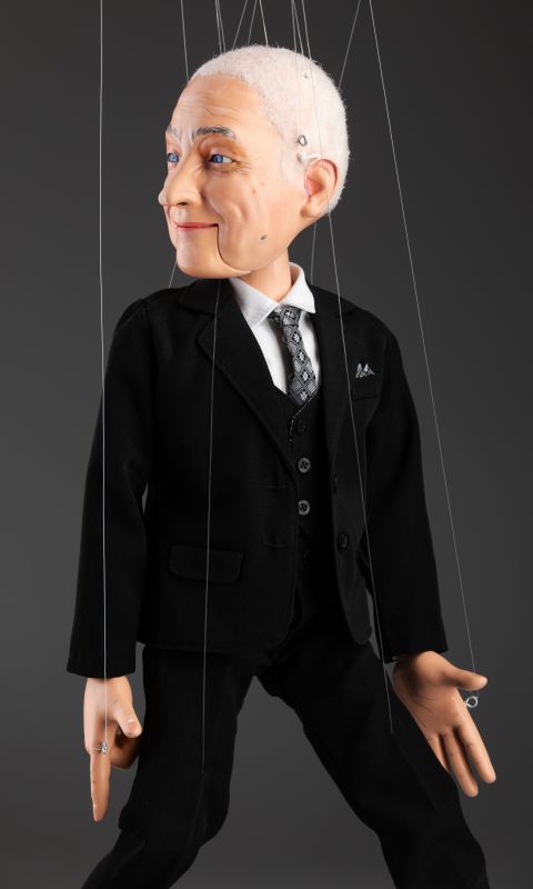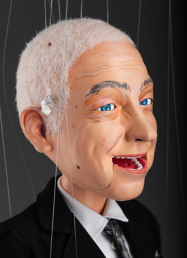 Cette commande particulière a été une grande surprise. On nous a demandé de faire une marionnette du docteur Radkin Honzák. Il est l'un des psychiatres les plus célèbres de la République tchèque et ce fut un honneur de pouvoir créer son portrait marionnette.