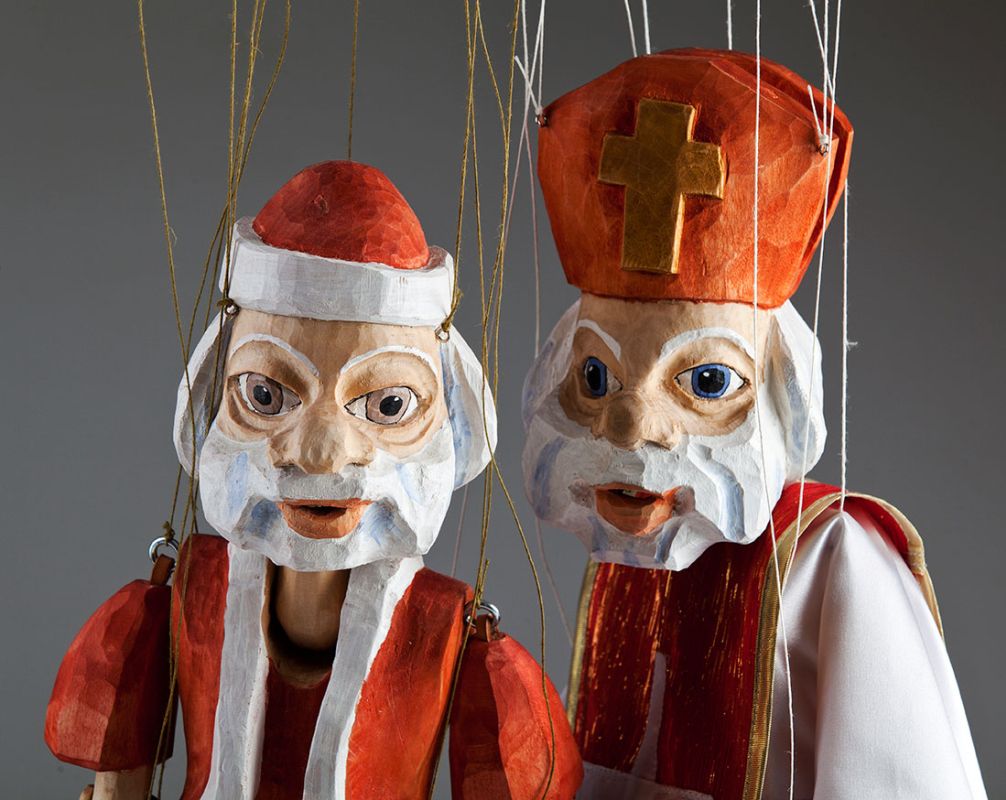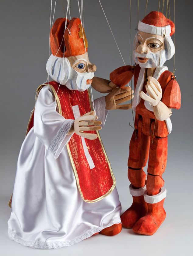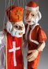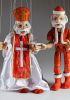 Quel beau couple de marionnettes en bois! Chacun porte l'esprit de Noël à sa manière. Profitez de ces marionnettes en particulier pendant ce temps magique.