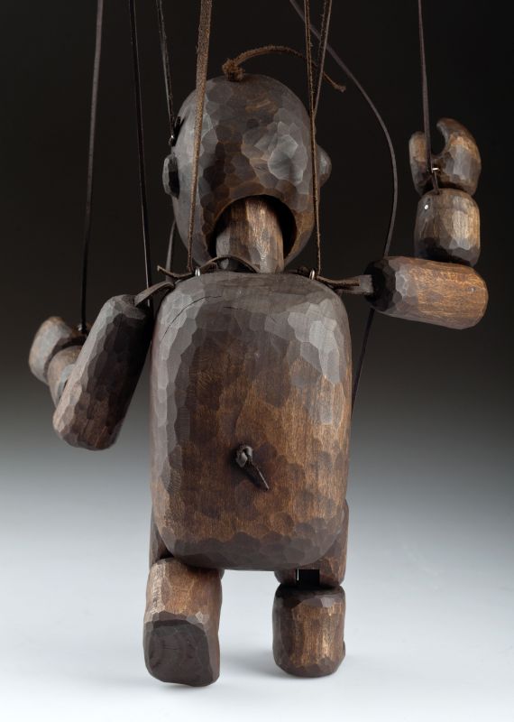 Les légendes disent que Golem a été créé par le rabbin Loew pour protéger la vieille ville juive. Et pour qu'il puisse également protéger votre foyer. C'est assez facile de jouer avec lui, ses mouvements sont fluides et il est attaché à des cordes en cuir. Cette marionnette est définitivement une œuvre d'art unique.