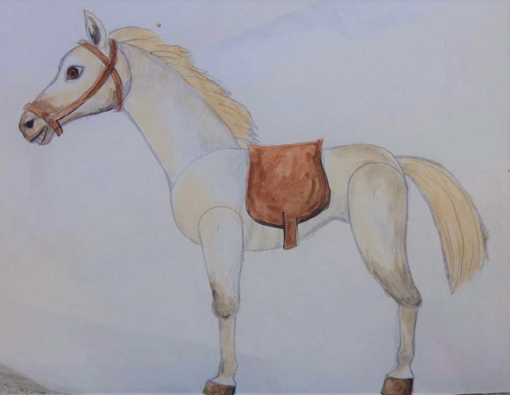 Pour l'instant nous n'avons que ce dessin, mais dans quelques mois nous aurons un beau cheval de 50 cm de haut. Ce croquis était un modèle de cheval, que nous avons sculpté sur commande pour un client, malheureusement nous ne l'avons pas pris en photo - c'était une commande expresse et il n'y avait plus de temps pour la photographie.